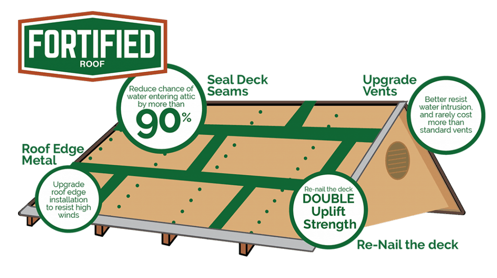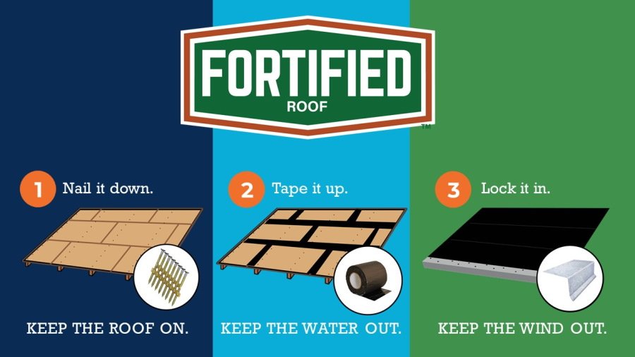 A Fortified roofing system includes enhanced materials and installation techniques (like sealed roof decks and stronger attachment methods), helping to prevent water intrusion and structural failure during severe weather events. - Added Home Value